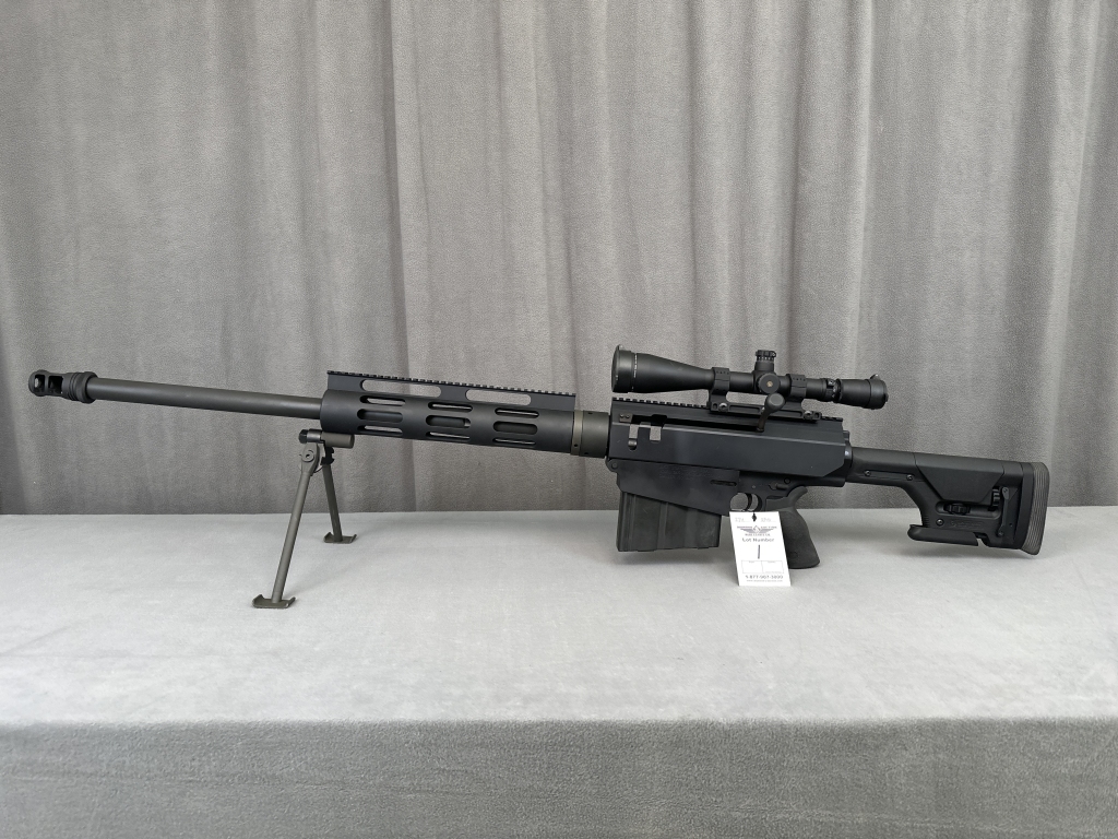 LOT 1. BUSHMASTER BFI BA50, .50 BMG, BIPOD, (2) 10-ROUND MAGS, LEUPOLD MARK 4 LONG RANGE M1 8.5-25X50MM SIDE-FOCUS SCOPE, LNIB. SN: SD000514R
