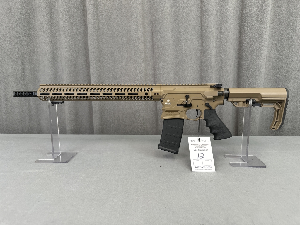 LOT 12. COBALT KINETICS BAMF PRO, 5.56MM, FDE, MFT ADJ. STOCK, HOGUE GRIP, COBALT PRO MUZZLE BRAKE, 15.5″ HANDGUARD. EXCELLENT. SN: B17A411
