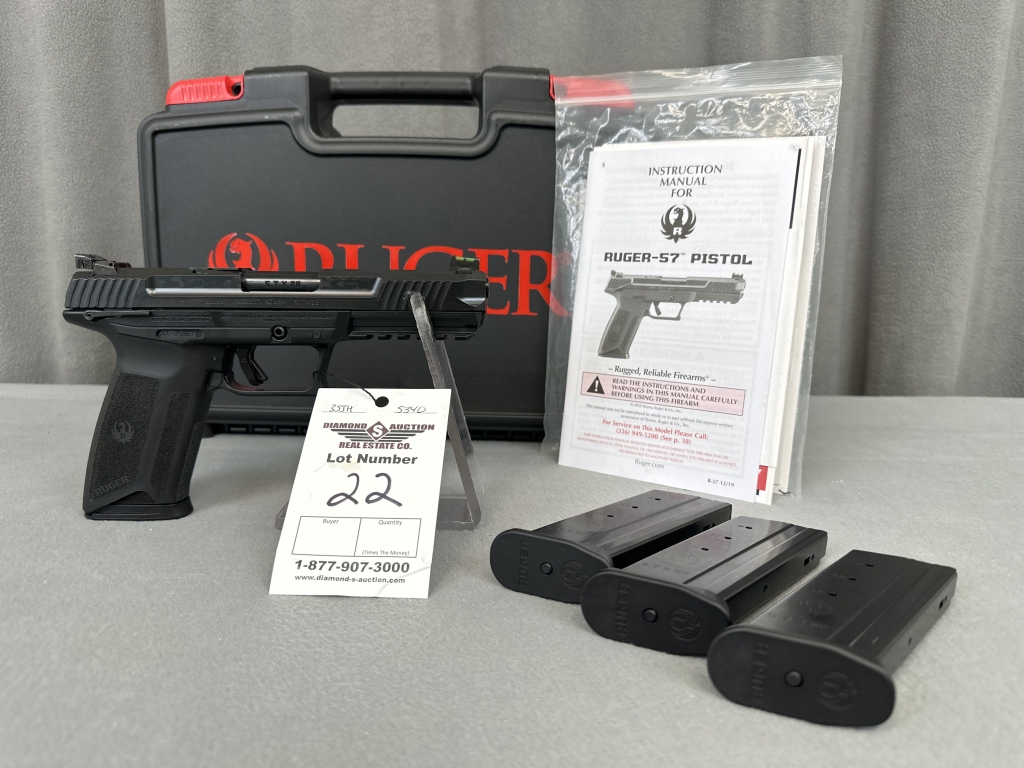 LOT 22. RUGER 57, 5.7X28MM, BLACK/BLUED, 5″ BARREL, SEMI-AUTO PISTOL, LNIB. SN: 641-35887