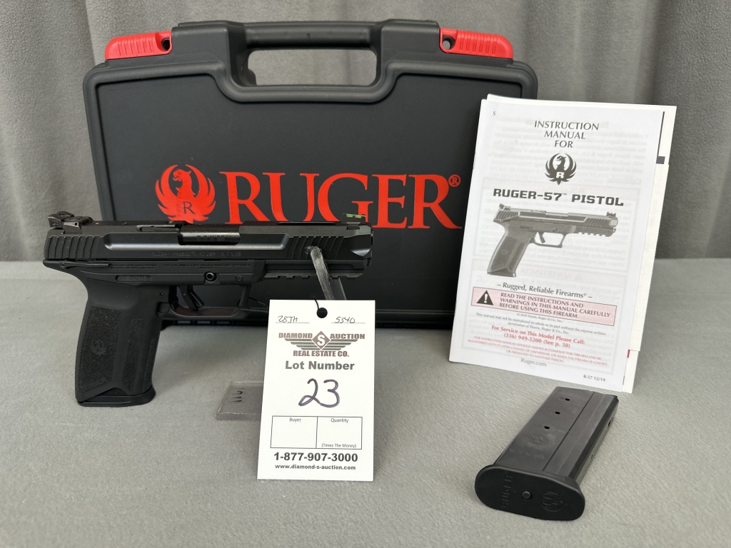 LOT 23. RUGER 57, 5.7X28MM, BLACK/BLUED, 5″ BARREL, SEMI-AUTO PISTOL, NIB. SN: 641-09271