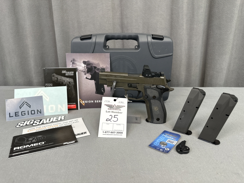 LOT 25. SIG SAUER P226 LEGION, 9MM, 4.4″, SAO, X-RAY 3, BLACK G10 GRIP, ROMEO1PRO. SN: 47E068854