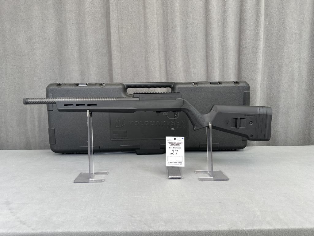 LOT 27. VOLQUARTSEN SUMMIT, 17 HM2, STRAIGHT PULL, BLACK MAGPUL STOCK, CARBON FIBER THREADED BARREL. SN: VFS01272