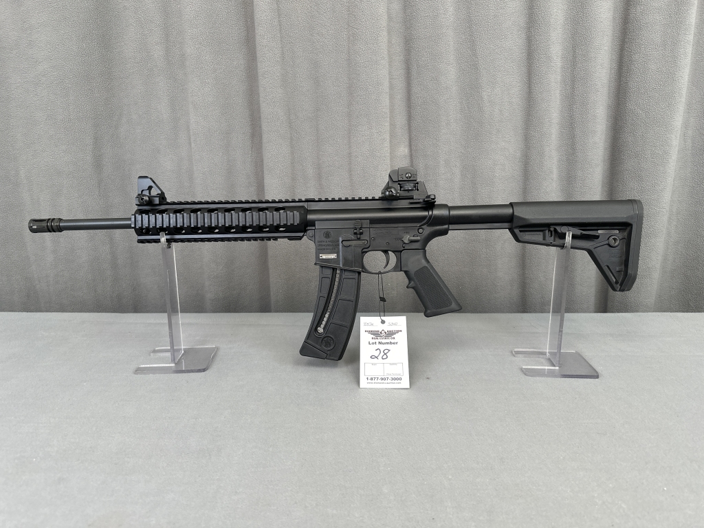 LOT 28. S&W M&P 15-22, QUAD RAIL, SIGHTS, (4) MAGS. SN: DUR2149