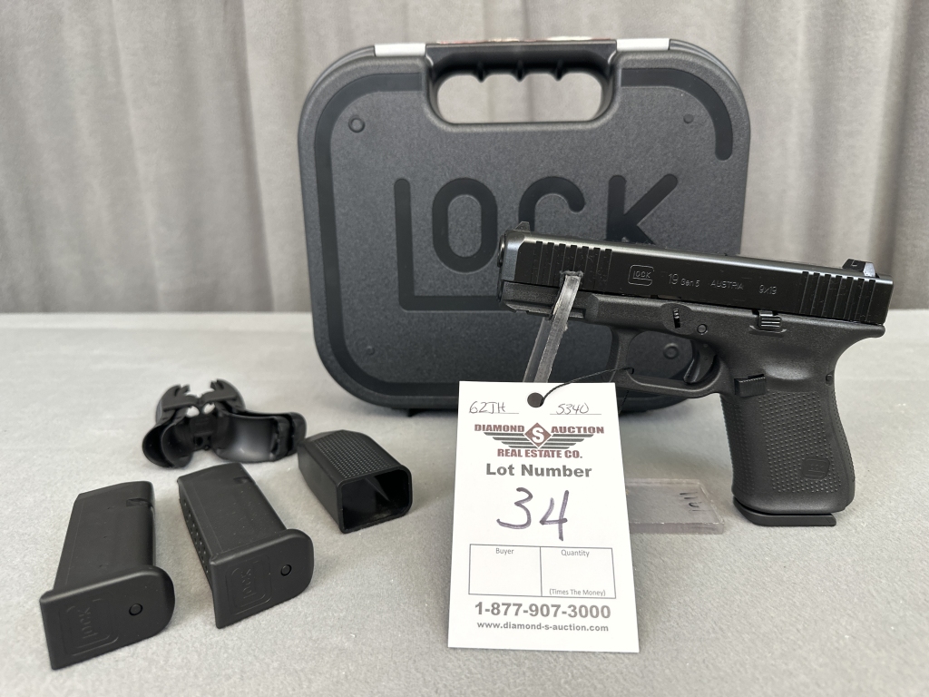 LOT 34. GLOCK 19 GEN 5, 9MM, (3) 15-ROUND MAGS, NIB. SN: BRXB730