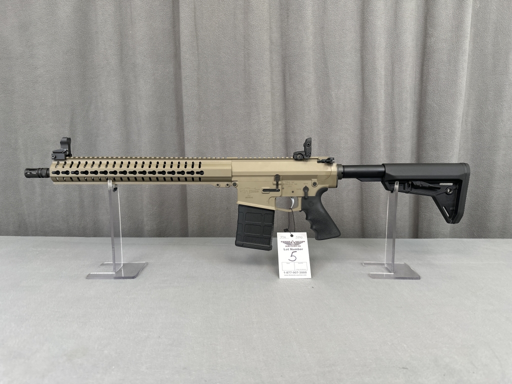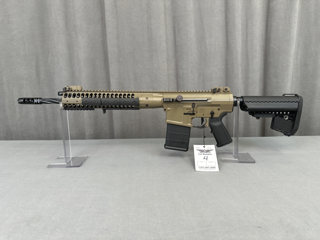 LOT 4. LWRC R.E.P.R., 7.62X51MM, FDE, GEISSELE TRIGGER, SPIRAL-CUT BARREL, MAGPUL MIAD GRIP, LWRC FLIP SIGHTS, VLTOR STOCK, EPSILON 65 VG6 FLASH SUPPRESSOR. SN: 78-01715