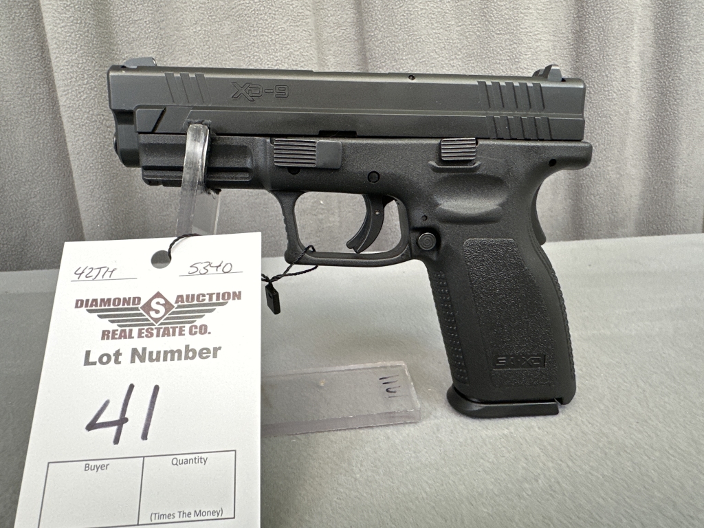 LOT 41. SPRINGFIELD ARMORY XD9, 9MM, LIKE NEW, NO BOX. SN: BA326338