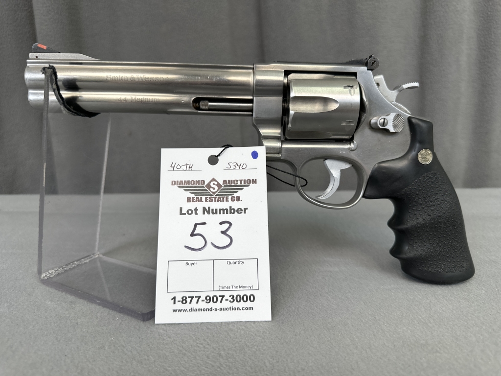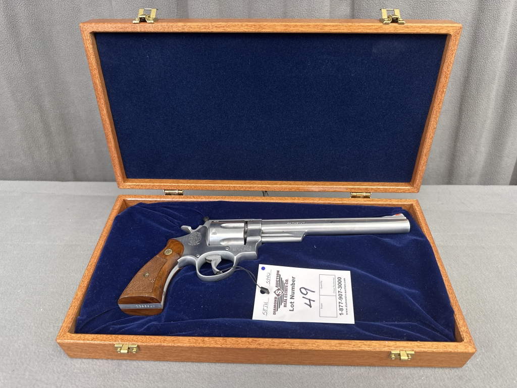 LOT 49. S&W 629 (MARKED 29-2), STAINLESS, MATCHING NUMBERS, PRE-LOCK, 8 3/8″ BARREL, ADJUSTABLE SIGHT, MFG. 1979–1980. SN: N753611