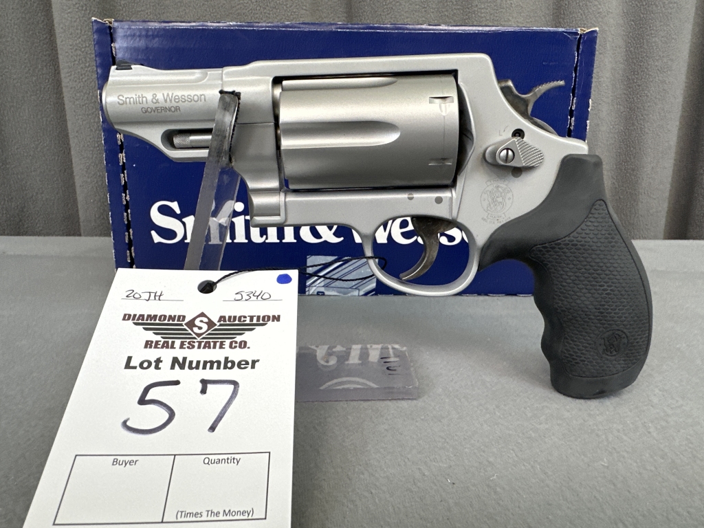LOT 57. S&W GOVERNOR, SILVER FINISH, .410/.45, 2.75″ BARREL, SKU 160410, NIB. SN: DMP7655