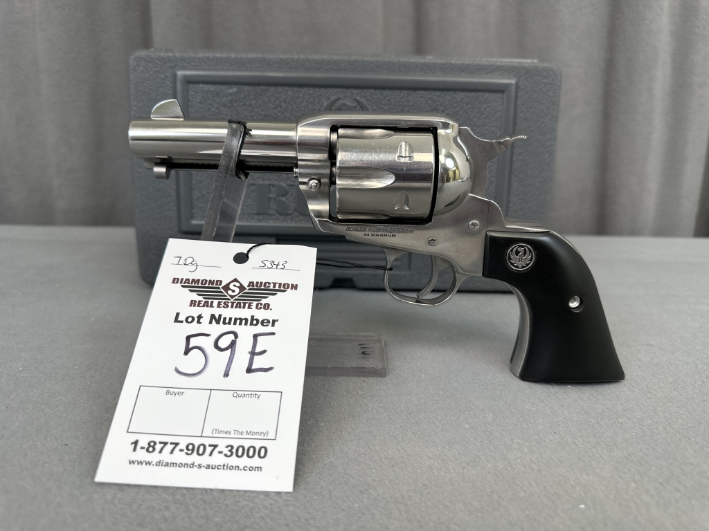 LOT 59C. RUGER NEW VAQUERO, .44 MAG, HI-GLOSS STAINLESS, 3 3/4″ BARREL. SN: 5903110