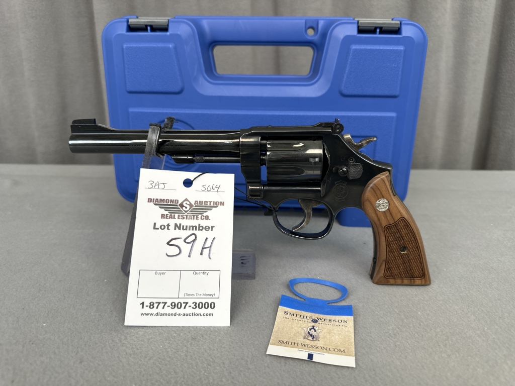 LOT 59A. S&W MOD. 586, .357 MAG/.38 SPL +P, L-FRAME, 4″ BARREL, HANG TAG, HARD CASE. SN: EES7835