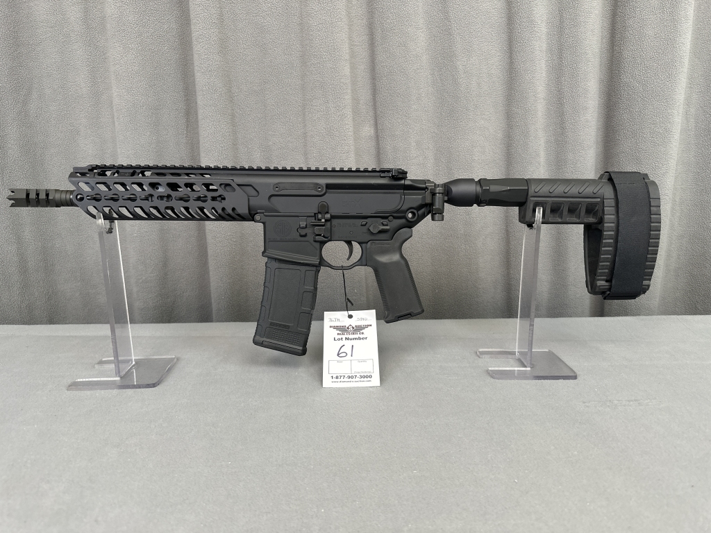 LOT 9. SIG SAUER 5.56 SWAT, 16″ 1:7 TWIST BARREL, FOLDING STOCK, QUAD RAIL, SIG HARD CASE. SN: JS026940